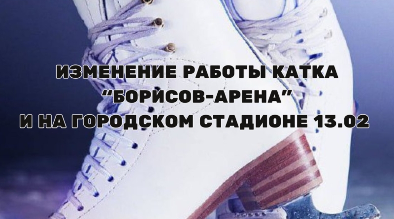 Читайте далее7.02 КАТОК БОРИСОВ-АРЕНА БУДЕТ РАБОТАТЬ С 10.00 ДО 22.00ЛЫЖЕРОЛЛЕРНАЯ ТРАССА С 19.00 ДО 22.008.02 КАТОК С 10.00 ДО 20.00ЛЫЖЕРОЛЛЕРНАЯ ТРАССА